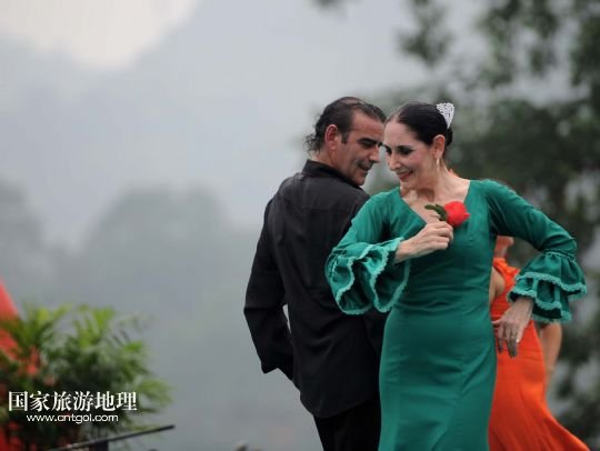 國家旅游地理 湖北宜昌9月17日訊 9月17日,宜昌長陽土家族藝術(shù)團(tuán)在現(xiàn)場表演。當(dāng)日,部分來自澳大利亞、西班牙、俄羅斯、捷克、蒙古國的藝術(shù)團(tuán)來到湖北宜昌清江畫廊景區(qū),與當(dāng)?shù)厥忻襁M(jìn)行民俗藝術(shù)表演交流。
