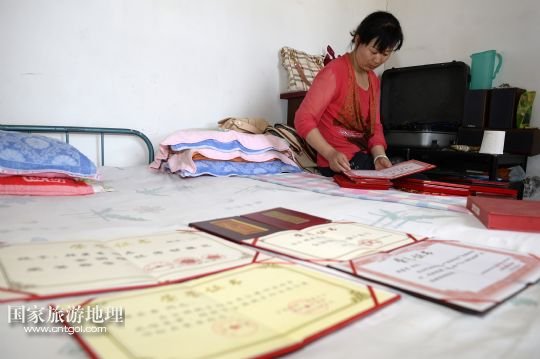 顧蕓香在展示獲得的獎(jiǎng)狀(7月23日攝)。