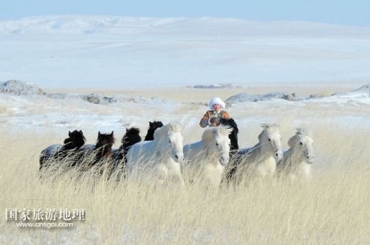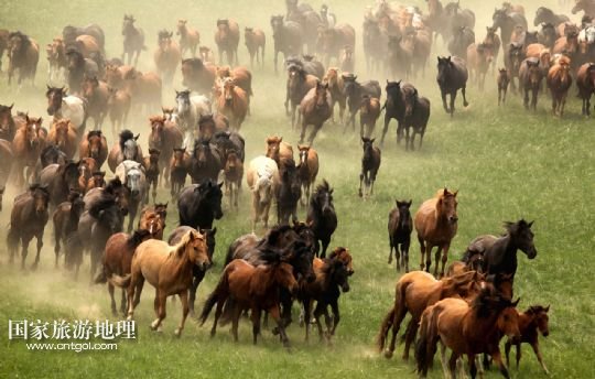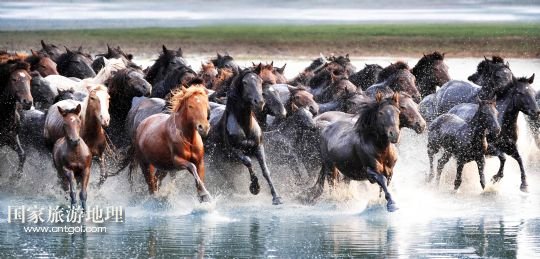 國(guó)家旅游地理 1月30日訊 一群蒙古馬在內(nèi)蒙古錫林郭勒盟阿巴嘎旗涉水奔馳(2013年7月20日攝)。風(fēng)從草原吹過,留下多少傳說。在內(nèi)蒙古草原,駿馬與人為伴,縱橫馳騁,一直和諧相處到今天。在漫長(zhǎng)的歷史長(zhǎng)河中,駿馬陪伴著人們走過了滄桑歲月,留下了許多可歌可泣的動(dòng)人傳說。