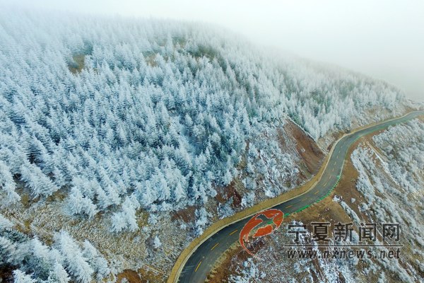 12月8日16時(shí)許,寧夏固原是六盤(pán)山隆德縣與涇源縣交界處突現(xiàn)霧凇,美麗的霧凇將山川樹(shù)木點(diǎn)綴的晶瑩剔透。 寧夏新聞網(wǎng)記者 祁瀛濤 攝