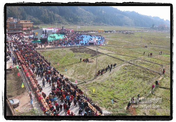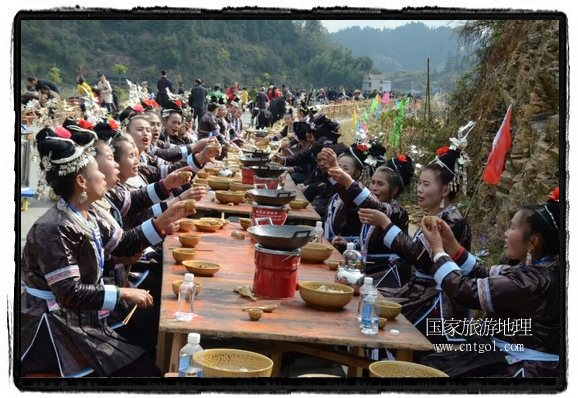 今年黎平侗年節(jié),除了延續(xù)亙古以來(lái)老百姓過侗年的各項(xiàng)傳統(tǒng)習(xí)俗活動(dòng)外,還有“天下侗家年”大型侗族史詩(shī)情景歌舞展演、侗族萬(wàn)人長(zhǎng)桌宴、招商引資推介會(huì)、七彩田園采摘體驗(yàn)、百村集市商品展銷、侗文化研討會(huì)、楊再思文化交流研討會(huì)等多項(xiàng)主題活動(dòng),其中,主打主推的“最大合攏宴”(萬(wàn)人長(zhǎng)桌宴)品牌,得到基尼斯紀(jì)錄總部到現(xiàn)場(chǎng)認(rèn)定,以1700桌合攏宴,總長(zhǎng)3.7公里,10380人同桌就餐,創(chuàng)歷史之最,成功載入《基尼斯紀(jì)錄大全》,吸引數(shù)萬(wàn)旅游客到場(chǎng)親自見證、參與、感受和體驗(yàn)這一千載難逢,氣勢(shì)恢宏的盛況。